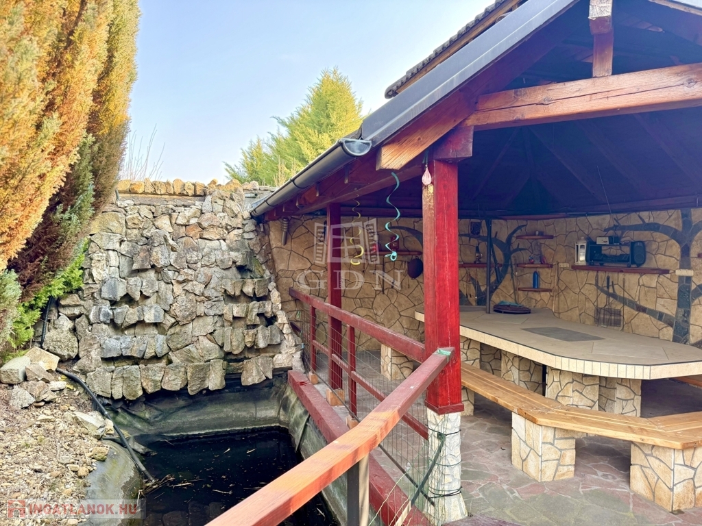 A telek összesen 960 négyzetméter, tökéletes helyszín kerti partikhoz, ugyanis a kertben egy szaletli is kialakításra került a saját vízesés mellett.