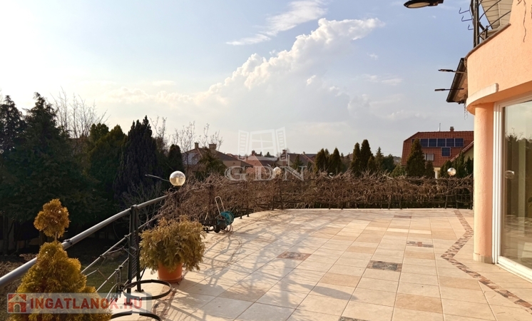 A házhoz tartozik egy 80 négyzetméteres panorámás erkély is, ahonnan gyönyörű kilátás nyílik a budai hegyekre.