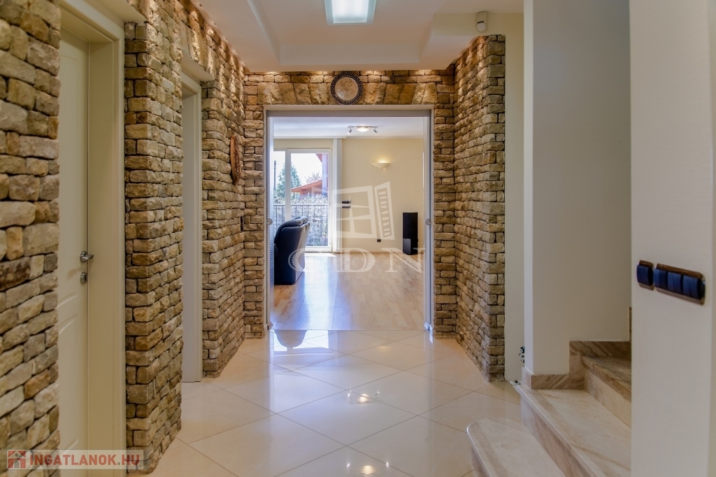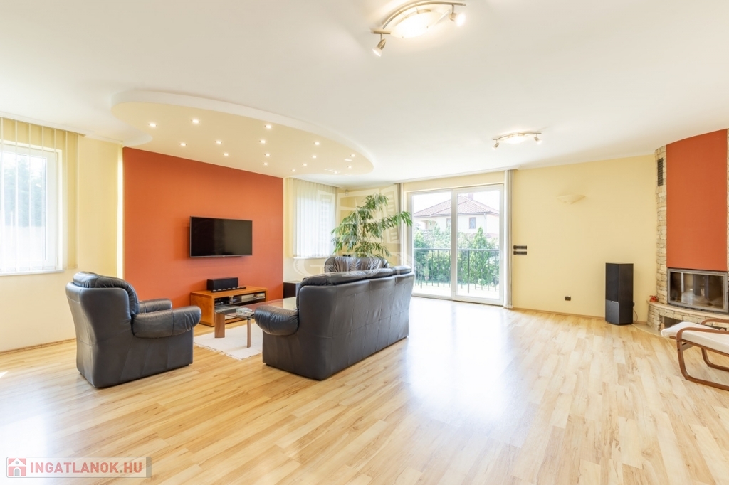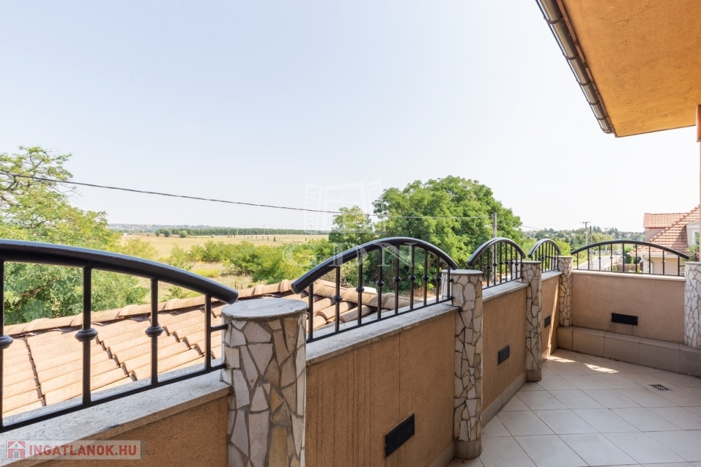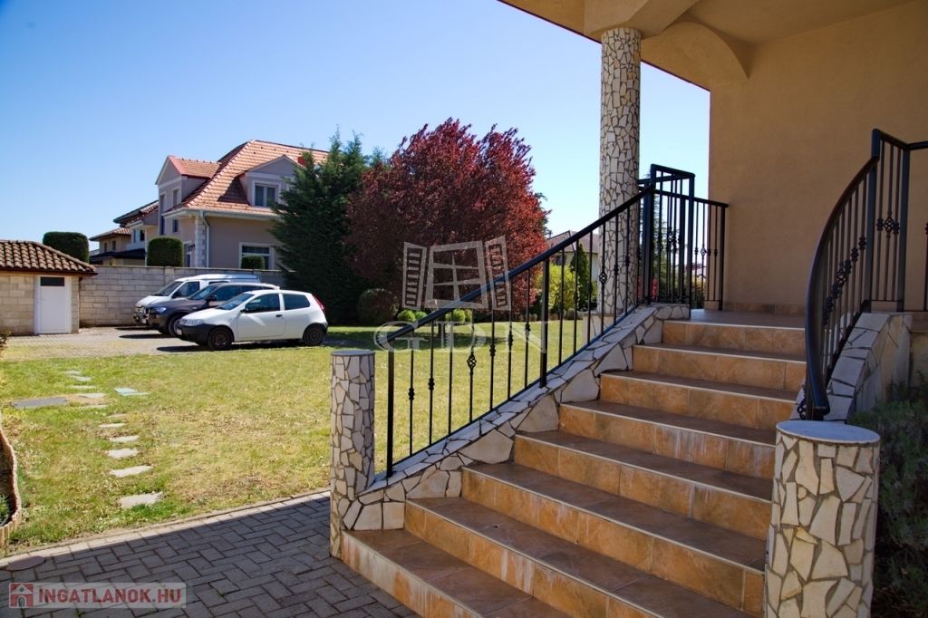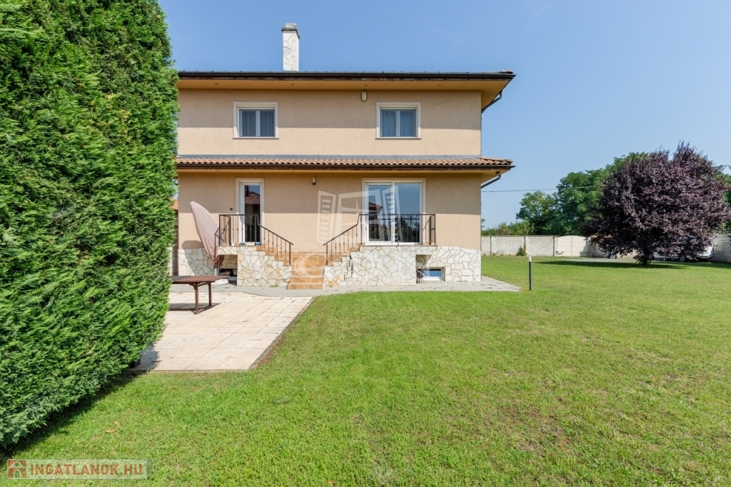 A ház dupla telekre épült 1309 nm-es így a 3 szintes 364 nm-es 5+1 félszobás 2 gardrób szobás ingatlan mellett bőven maradt hely a gondozott parkosított kertnek.