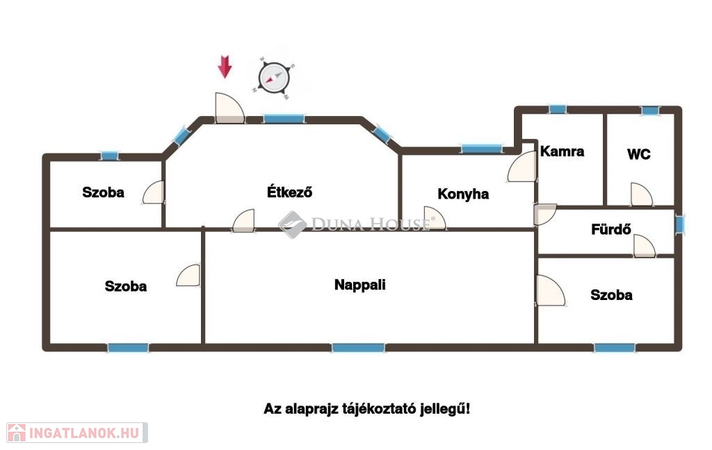 4 szoba + ebédlő + konyha + kamra + fürdőszoba + külön WC