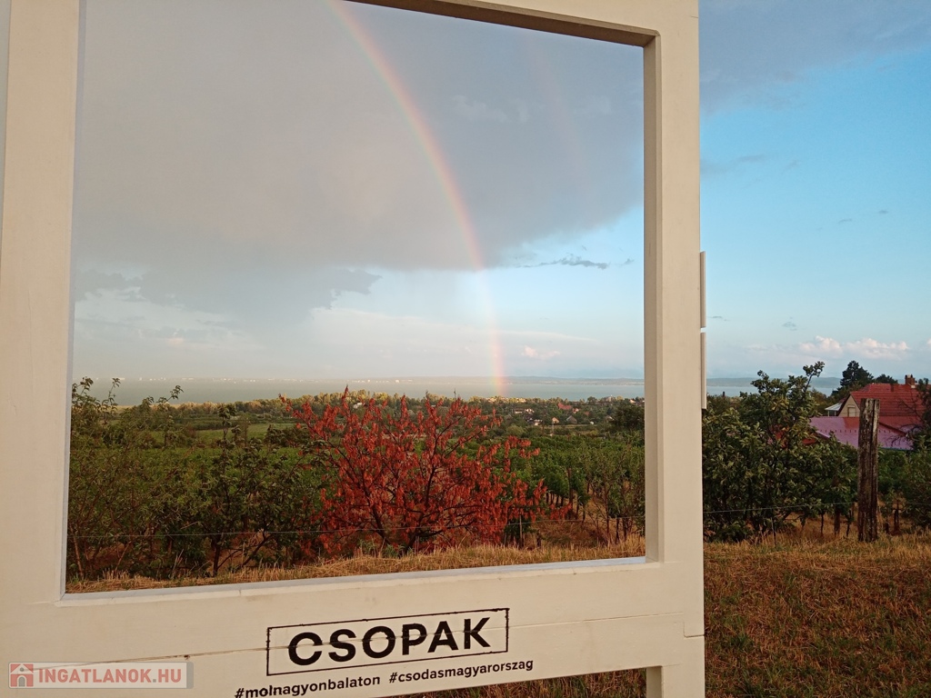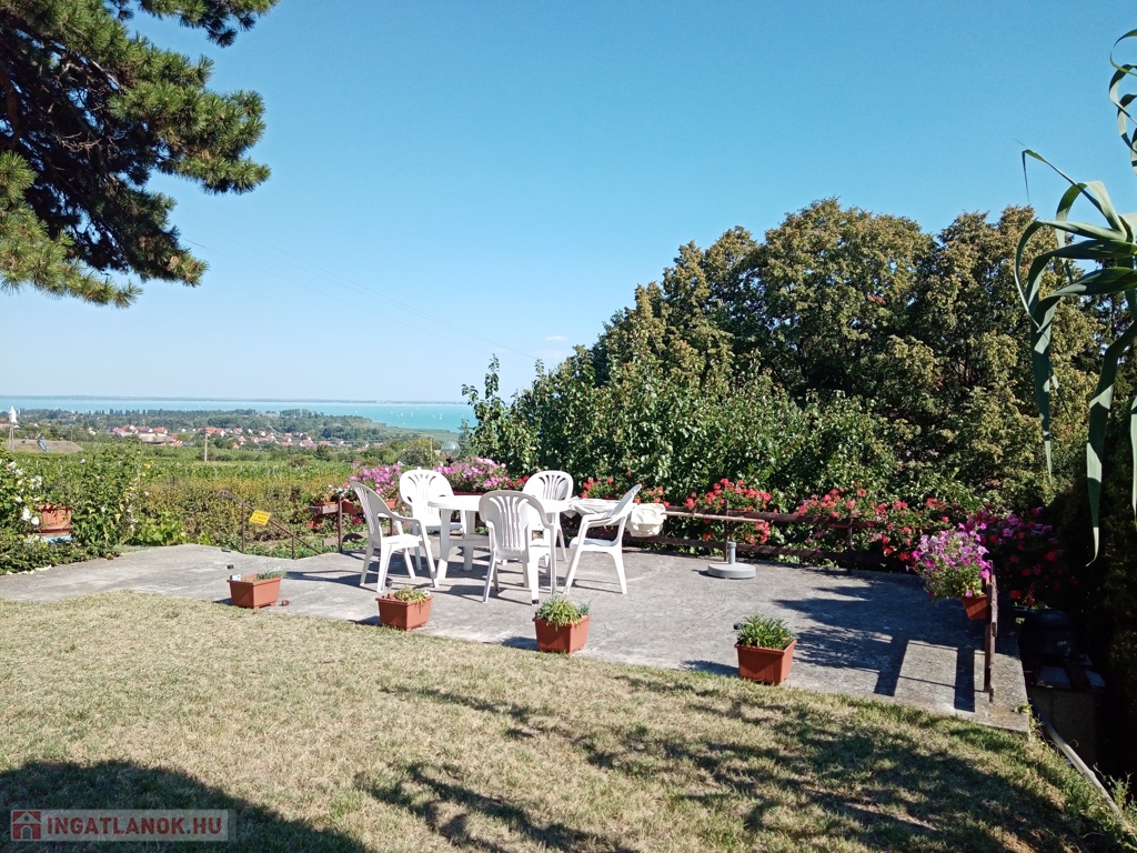 A Balatonra gyönyörű panorámával rendelkező, nyugodt helyen fekvő, ám a központhoz és az infrastruktúrához mégis közel lévő csopaki ingatlan eladó. Az ingatlanon az 1960-as években épült, átlagos állapotú, lakható, 2 szoba összkomfortos, 80 nm-es ikerházfél, valamint különálló, hangulatos, baráti összejövetelek megtartására alkalmas présház borospincével található. Az ingatlan összközműves, víz, villany, csatorna a házban, gázcsonk az udvaron. A ház fűtése jelenleg 2db cserépkályhával megoldott. Az ingatlan két utcával határolt saroktelek. Parkolási lehetőséget az udvari kocsibeállók, valamint a zsákutca védelme biztosít. Az ingatlan az innovatív ötletek tárházát magában foglaló, de jelenlegi állapotában is lakható, vagy nyaralható lehetőség. A lenyűgöző balatoni látkép varázsa feledhetetlen élményt párosít a teraszon elköltött reggeli kávék, vagy az esti borozgatások hangulatához.