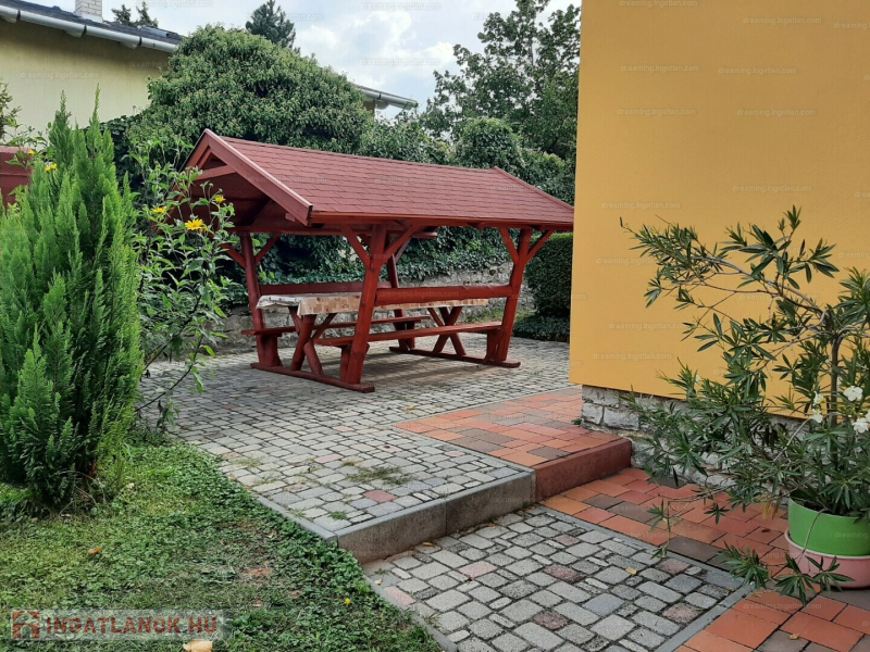 A kert szépen parkosított, szőlőlugas, grillező helyek, ping-pong asztal várja a nyaralókat. Az öntözés fúrt kútból könnyen megoldható.