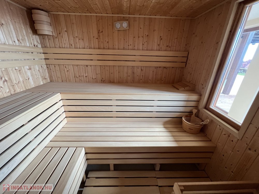 A ház egyik ékessége a wellness részleg, beltéri masszás medence, szauna, gőzkabin, öltözővel és zuhanyzóval.