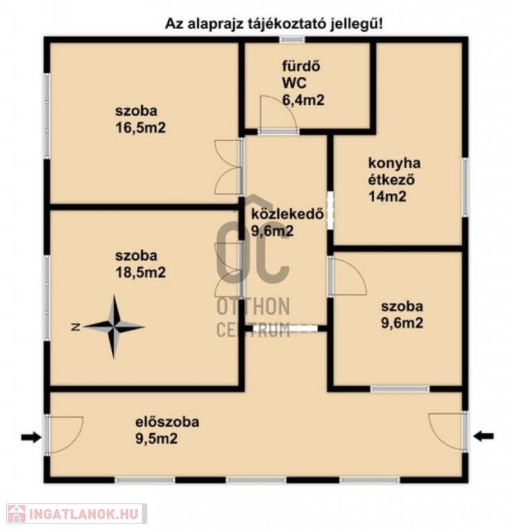 A ház helyiségei: 3 szoba, 1 fürdőszoba-WC, konyha-étkező, előszoba, közlekedő.