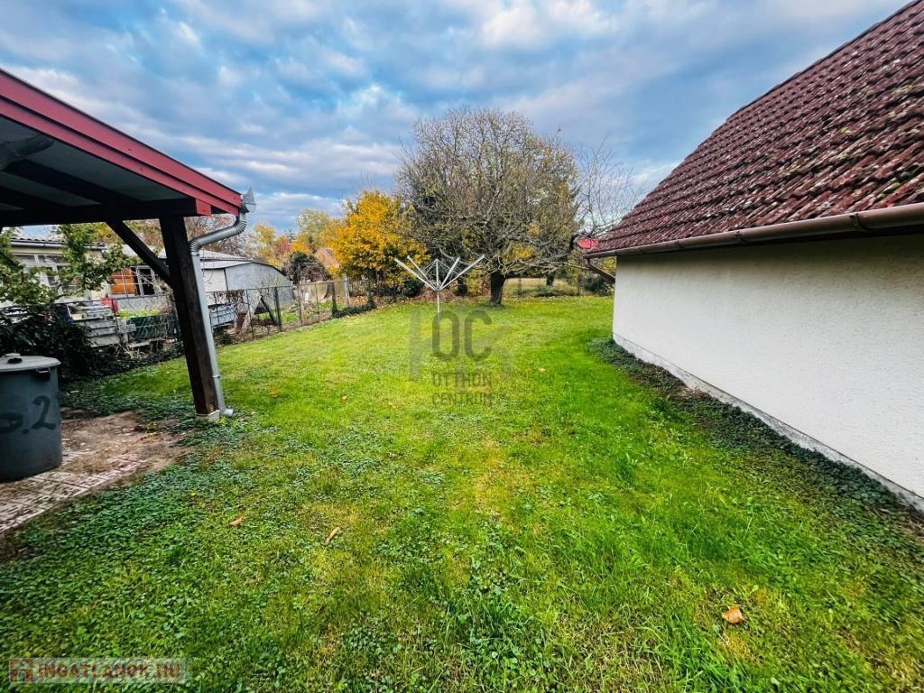 Telek: 840 m², teljesen körbekerítve betonozott kerítéssel, kovácsolt vaskapu