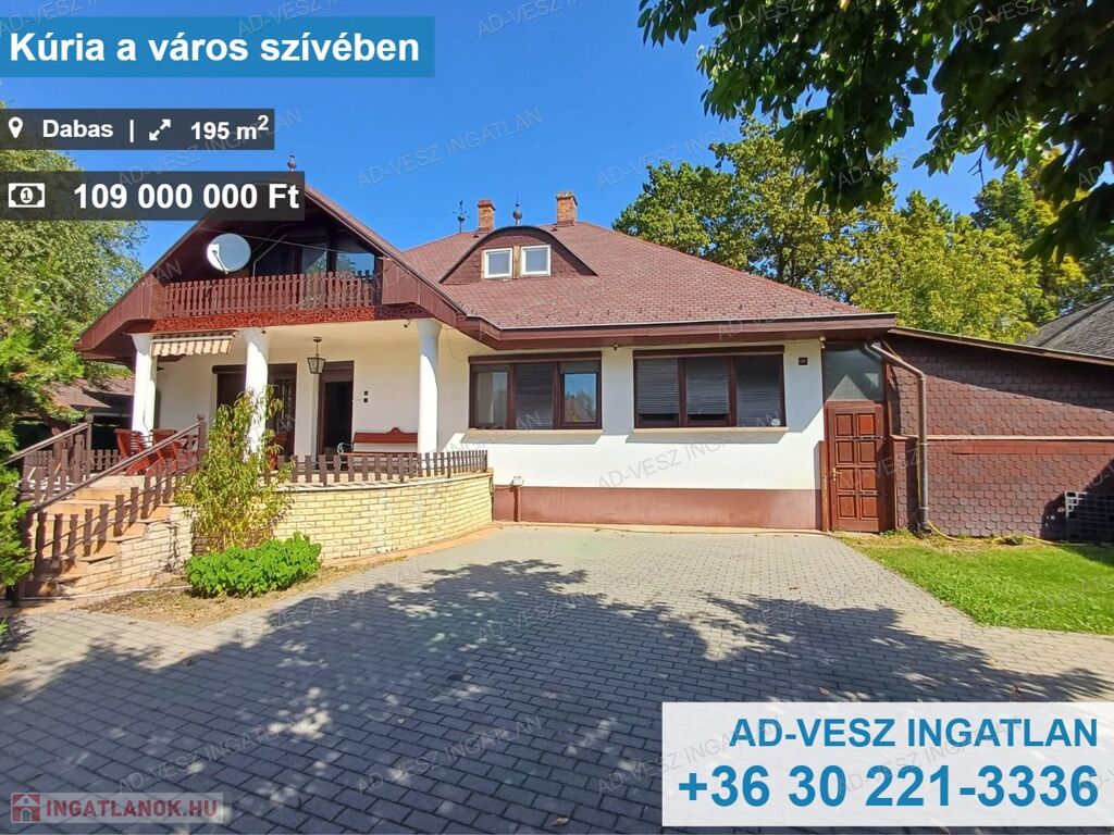 Dabas város központjában, a kulturális negyedben, műemlékvédelmi övezetben, eladóvá vált ez a kúria jellegű családi ház kétállásos garázzsal, és 154m2-es melléképülettel.