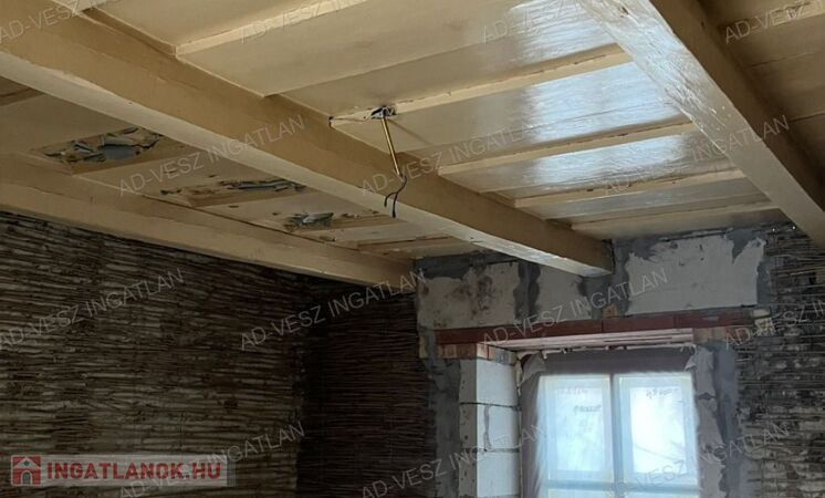 A ház stabil alapokra épül, kandalló beépítésére is alkalmas, és minden közmű rendelkezésre áll, így a befejezés után alacsony költségvetésű, energiatakarékos otthon alakítható ki.