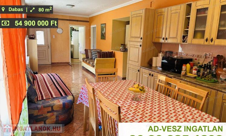 Eladásra kínálunk egy 80m²-es családi házat, a hozzá tartozó 1326m²-es telekkel Dabas-Gyón csendes, barátságos részén.
