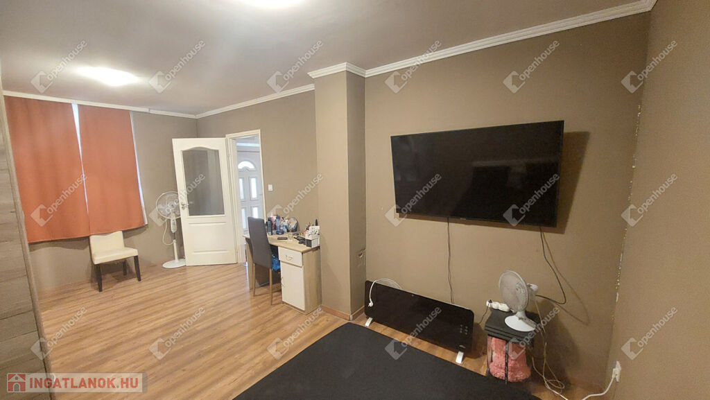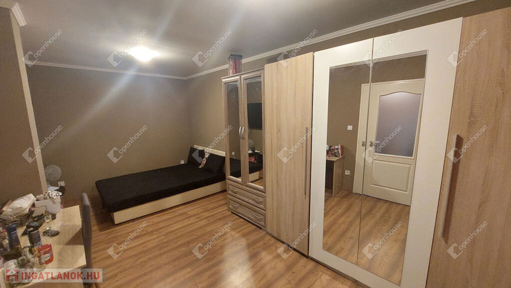 A szobák laminált parkettával, a többi helyiségek járólappal burkoltak.