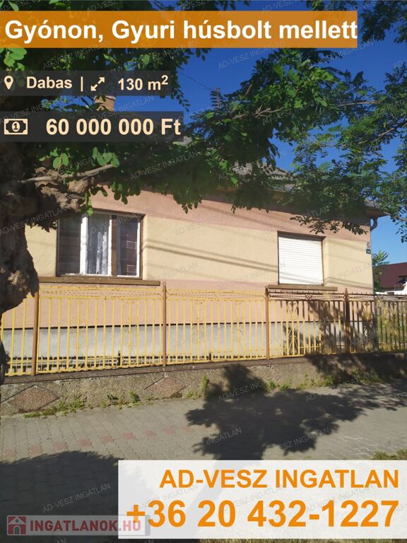 Dabas-Gyón központjában, a Kossuth Lajos utcán, "Gyuri húsboltja" mellett eladó egy 2 lakrészből álló, azonnal költözhető családi ház!!!