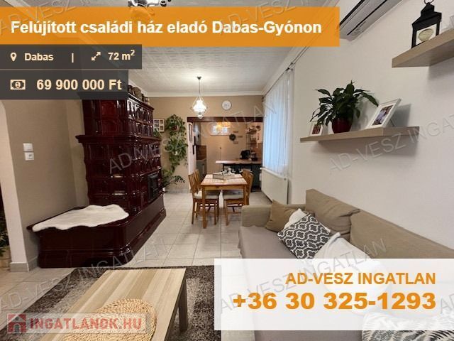 Eladó egy 72m2-es felújított családi ház Dabas Gyón központjában.