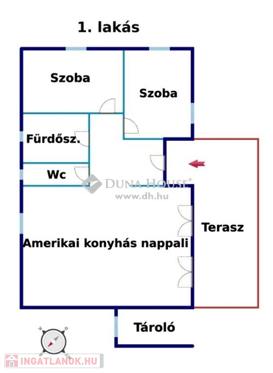 1. lakás 75,05 nm + 23,73 nm terasz + 6 nm tároló + 480 nm-es telek: 71,9 Mft.