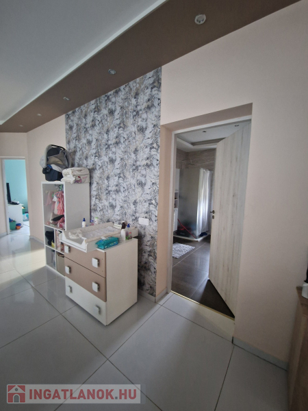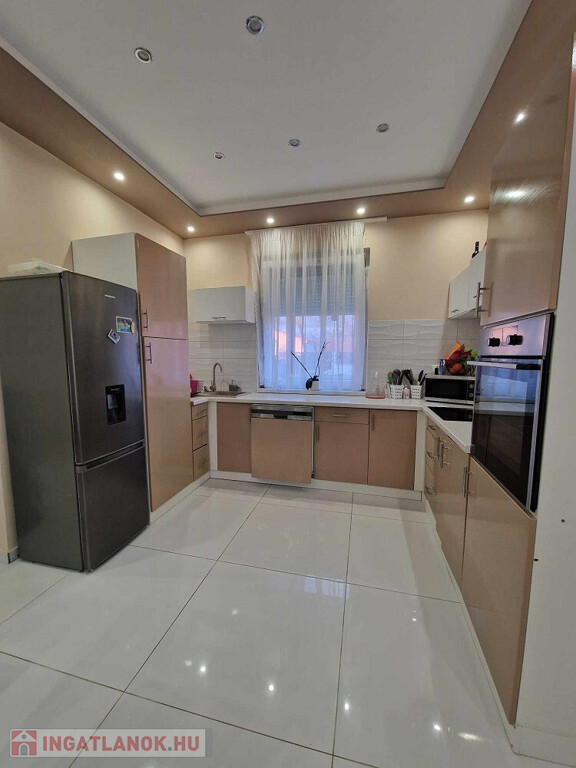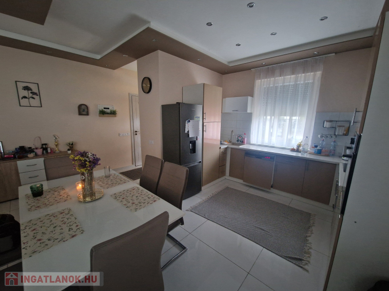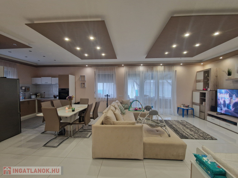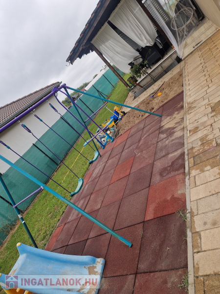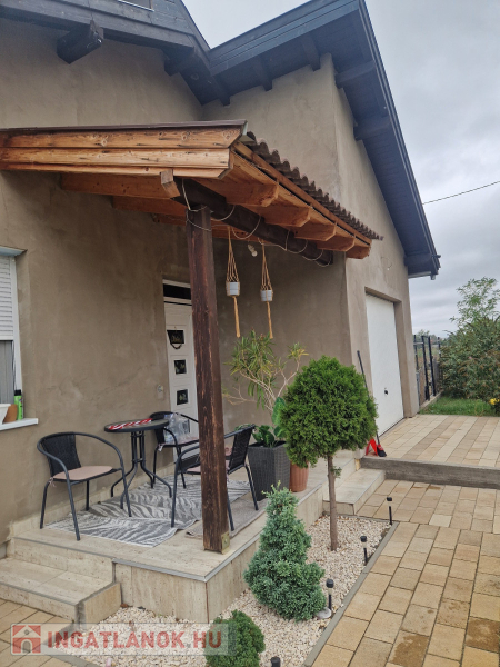 Eladó Dabas városunkban , önálló 93nm.-es lakótérrel+17 nm garázzsal újszerű családi ház.Az épület 4 éve épült ,téglából , 10 cm.-es szigeteléssel, minden újszerű még .Garázskapcsolat a lakótérrel , mely,fűthető .Az ingatlanra már csak egy szép szín , ami tetőfokára emelné .Telke sarki , két bejárat is biztosított így .Udvara parkosított, folyamatos a burkolása. Automata öntözőrendszerrel, fúrt kútról történik az öntözése a gyönyörű fűnek.Kis játszótér és tágas terasz biztosítja a család pihenését,kikapcsolódását.Kapuja egyedi kovácsolt vas. Elektromossága kiépítve.Az ingatlan amerikai konyhás megoldással 3 háló szobával épült meg, melyből az egyiket jelenleg gardrobe-nak használnak.Belső kialakítása modern kivitelezés. Tágas fürdővel rendelkezik.Konyhája gépesített.Fűtése kombi kazánról padlófűtés rendszerű.Nappalijából léphetünk ki a tágas teraszra. Ablakok szúnyoghálóval és redönnyel ellátottak. Terasz ajtó elektromos redönyt kapott.Érdeklődés esetén hívjon bizalommal:Sponga Mária067o431ooo7