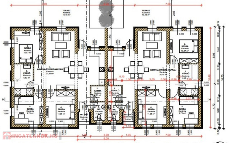 Budapesttől 35 percre, Dabas központhoz közel, de csendes részen eladó, egy külön bejáratos nettó 82 nm-es ikerház fél ház+ 19 nm-es terasz, 490 nm-es önálló. elkerített telekkel. A házak egy telken de teljesen külön kert résszel készülnek, ezért nagy előny, hogy a lakók nem zavarják egymást . A házban egy amerikai konyha-nappali-étkező, 3 db hálószoba, fürdőszoba, külön wc, tároló, előtér és fedett terasz lesznek kialakítva. Műszaki paraméterek: Sávalap vasbeton erősítéssel, épület falazata tégla 15 cm hőszigeteléssel. A tetőre cserép fedés kerül . A homlokzat színe fehér lesz. Nyílászárók műanyag szerkezetű bukó -nyíló kivitelben 3 rétegű üvegezéssel készülnek. A ház fűtése padlófűtés, amit hőszivattyús rendszer biztosít, ezekhez napelem kiállás is biztosítva lesz ( így akár 0 Ft-os rezsijű otthonban élhet aki ezt a házat választja). A ház bejárata előtt a járda viacolorból készül el. Igény szerint akár garázs is kérhető. A vonat, busz járat 10 percre, Iskola, óvoda, orvosi rendelő, gyógyszertár, bevásárló központ szintén a közelben. Amennyiben felkeltette érdeklődését, hívja a 06204004006-os számot