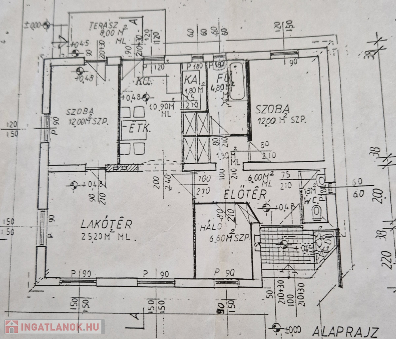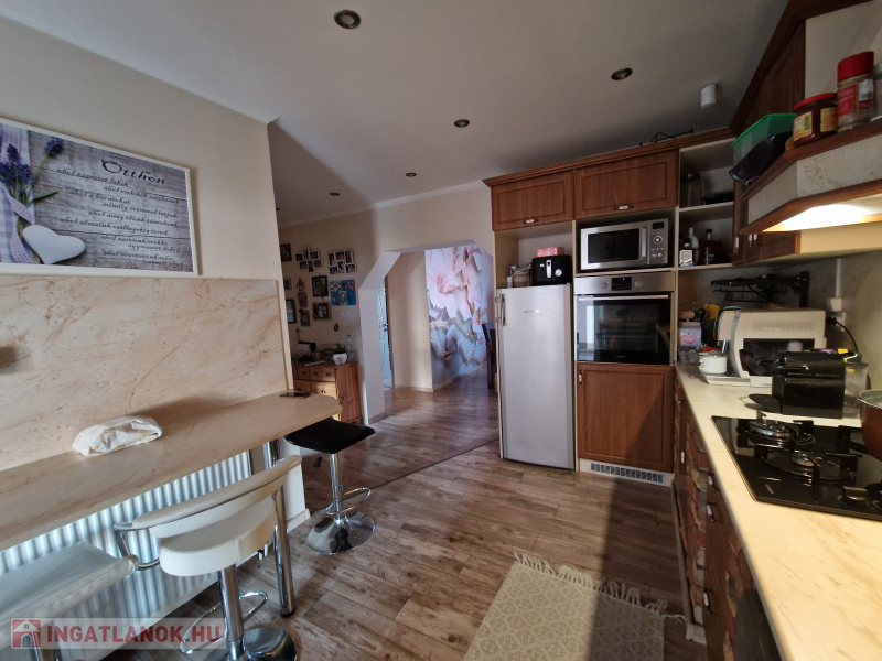 Helyiségei: -Előtér -Mosdó-wc -Közlekedő -Nappali-étkező -3 db hálószoba -Konyha (nyitott) -Kamra -Fürdő -Terasz