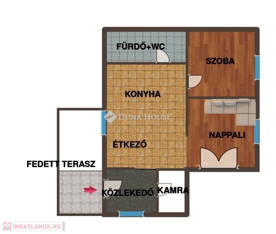 Minden helyiségben a fürdőszoba kivételével műanyag nyílászárók redőnnyel és szúnyoghálóval felszerelve.