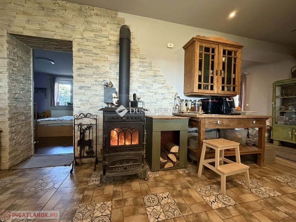 Fűtést a vízteres kandalló adja radiátoros hőleadással. 1 db inverteres 3,5 kw-os klíma az étkezőben. Meleg vizet villanybojler szolgáltatja. 1x32 amper és éjszakai áram van.
