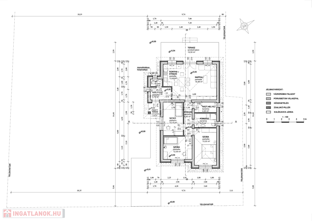Az ingatlan 30-as Nútféderes tégla falazóelemből épül, fa födémmel.