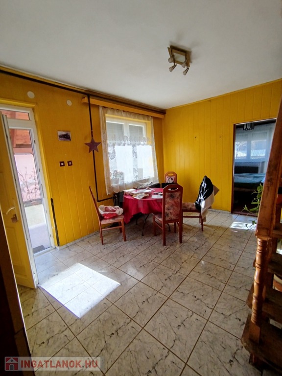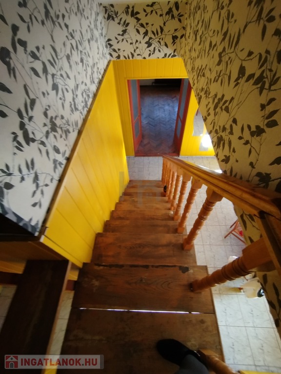 -a kétszintes családi házban a földszinten nappali, közlekedő. 3 szoba, wc, fürdőszoba, konyha, kamra található; az emeleten pedig 2 szoba, közlekedő és wc