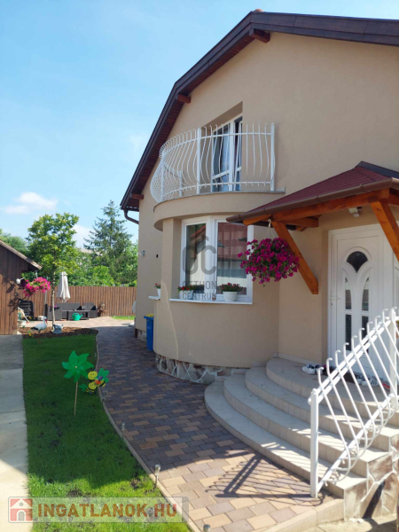 A kert rendezett, térkövezett és füvesített – azonnal birtokba vehető, gondozott környezet.