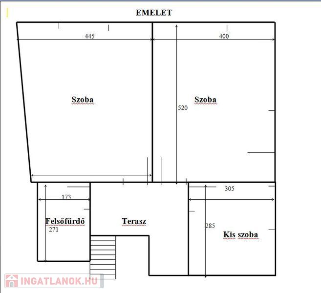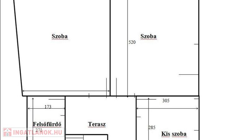 A földszinten 2 nagy méretû szoba, konyha, fürdõszoba és WC, az emeleten 3 szoba, fürdõszoba, WC, valamint egy nagy terasz található