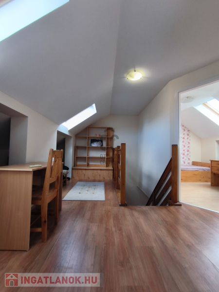 Debrecen egyik legkedveltebb és mégis csendes környékén, a Gerébytelepen kínálunk eladásra, egy 120 m2-es, tégla építésű családi otthont 270 m2-es , önálló telken. A ház 2000- ben épült, tégla falazattal, majd a tetőtér 2007-ben beépítésre került. Élhető terek , jól átgondolt helyiségek, kiváló benapozás jellemzi. Gázcirkó fűtéses, radiátor hőleadókkal. A földszinten a tágas nappalin és étkező konyhán kívül a fürdőszoba mellett még 2 db lakószoba is kialakításra került, A felső szinten 3 kisebb szoba nyílik a közös nappali helyiségből amely klímával ellátott . Itt zuhanyzós fürdőszoba kapott helyet. Ebben a házban minden családtag megtalálja a saját helyét, legyen szó akár dolgozó-, gyerek- vagy vendégszobáról. Az ingatlan beépített bútorokkal és szekrényekkel rendelkezik, konyhája gépesített. A jelenlegi bútorzat is igény szerint maradhat, így akár azonnal birtokba vehető!