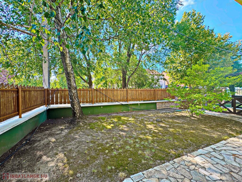 zöld hátsó kert 5 x 7.5 illetve 3.5 x 14.6 m2, összesen 88.5 m2,