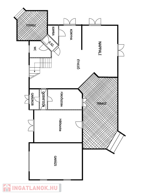 Praktikus tér kialakítása, sok ablaka miatt világos, kellemes hangulatú ingatlan. Többgyermekes családok számára kiváló választás, hiszen a tágas amerikai konyhás nappali 50 nm feletti, ahonnan közvetlen kijárat van a teraszra.