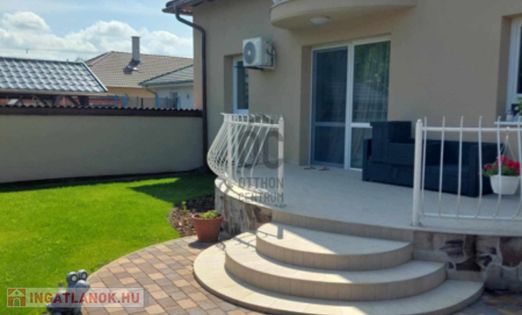 A kert rendezett, térkövezett és füvesített – azonnal birtokba vehető, gondozott környezet.