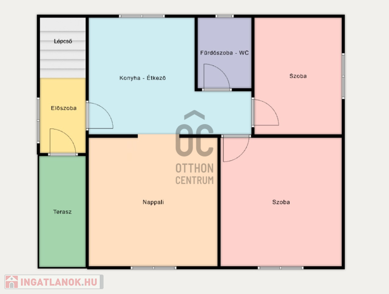 Földszint helyiségei: Étkező-konyha, nappali és 2 hálószoba, fürdőszoba-Wc egy helyiségben és hangulatos terasz Ideális az idősebb generációnak.