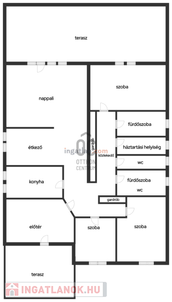 A kapu elektromos vezetékelése megtörtént, csak a mozgató motorokat kell felszerelni igény szerint. A kerítés kovácsolt vasból készült, a horganyzásnak köszönhetően időtálló. A hatalmas, fedett hátsó terasz mellett a 13 m2-es első terasz is a kényelmet szolgálja.