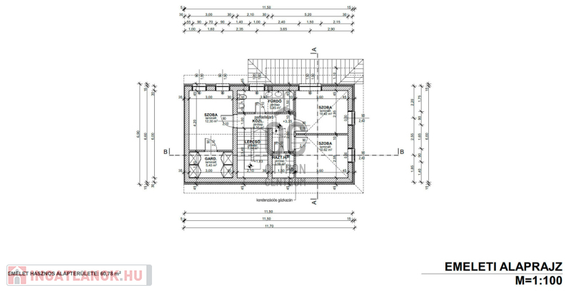 Emelet helyiségei : 3 szoba, fürdő, háztartási helyiség + az egyik szobához gardrob szoba.