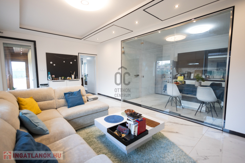 A 573 nm-es, gondosan karbantartott telken fekvő 134,7nm-es ingatlan, nappali + 4 hálószobás elrendezéssel biztosítja a tágas és kényelmes életteret akár nagyobb család számára is. A ház különlegessége a magas műszaki tartalom – padlófűtés, prémium nyílászárók, energiatakarékos megoldások, valamint egy fűtött, automata kapus garázs, amely a hűvösebb hónapokban is maximális kényelmet biztosít.