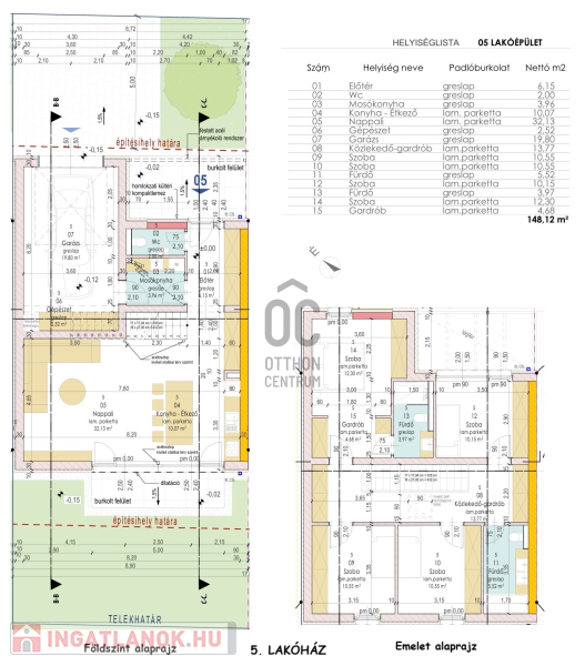 5. lakóház Br. 155 nm, nappali + 4 hálós: