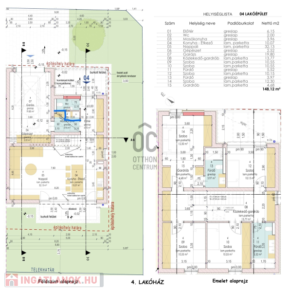 4. lakóház Br. 155 nm, nappali + 4 hálós: