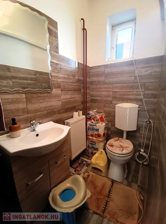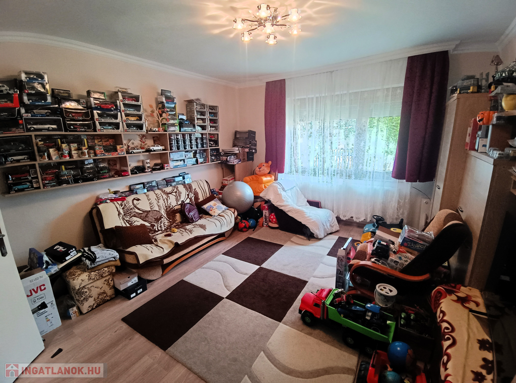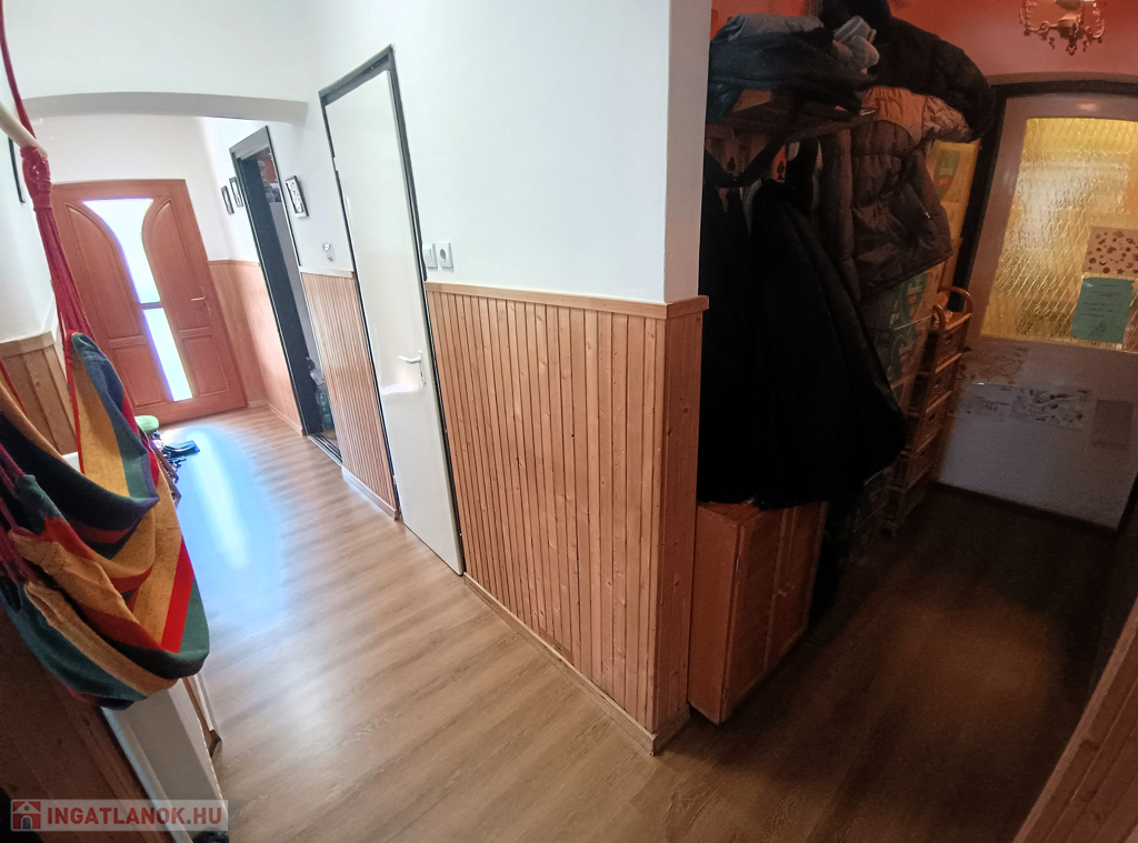 - Helyiségei: előszoba, 3 külön nyíló szoba, étkezőkonyha, mosókonyha + WC, fürdőszoba, külön még egy WC, mosdóval ellátva.