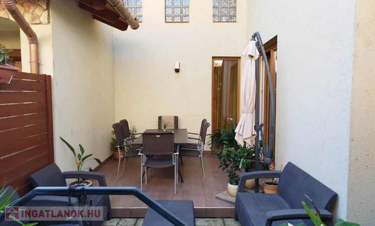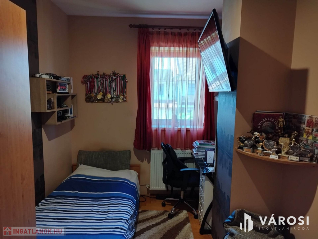 Debrecen kiemelt zöldövezetében a Liget lakóparkban, 125 nm-es 3 szoba nappalis szélső sorház 300 nm telekkel eladó. Az ingatlan csendes igényes szép környezetben helyezkedik el, és mivel nem közbülső sorház így a telek is nagyon jól élhető, rendezett parkosított, szép nagy teraszos, és a ház is 3 oldalról körbe járható. A ház elosztási kiváló, a földszinten található a nappali étkező konyha, egy wc mosdó, és természetesen a garázs. A felső szinten pedig 3 hálószoba, fürdőszoba wc, és egy szép nagy terasz. Ha egy igazán exkluzív helyen keres egy igazán jól megtervezett élhető házat akkor hívjon és nézze meg!