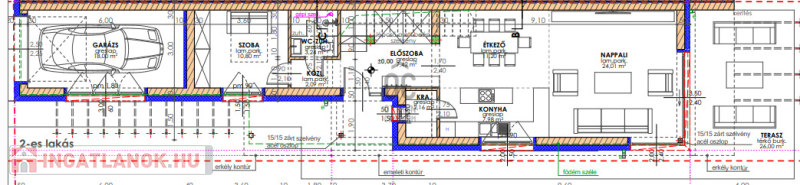 1.lakás: - szoba – gardrób (23,1 m2) – fürdőszoba (6,66 m2) – közlekedő (7,4 m2)