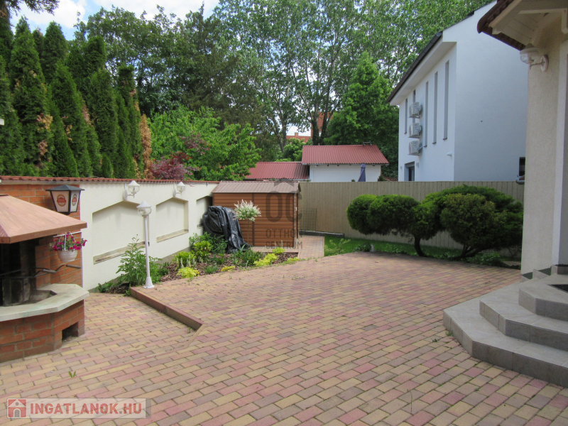 A parkosított kertben automata öntöző rendszer, fúrt kút, grillező és tárolóhelyiség is van.