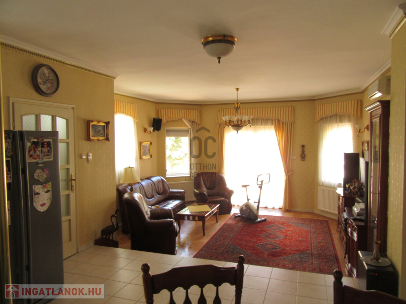 A földszinten lévő tágas nappali-amerikai konyha-étkező mellett spájz, zuhanyzós fürdőszoba és WC van,valamint egy külön bejáratú,35 nm-es önálló minigarzon is (szoba, főzőfülke, előszoba, kádas fürdőszoba, WC), ami akár irodaként is funkcionálhat. Az emeleten 4 hálószoba valamint fürdő és wc.