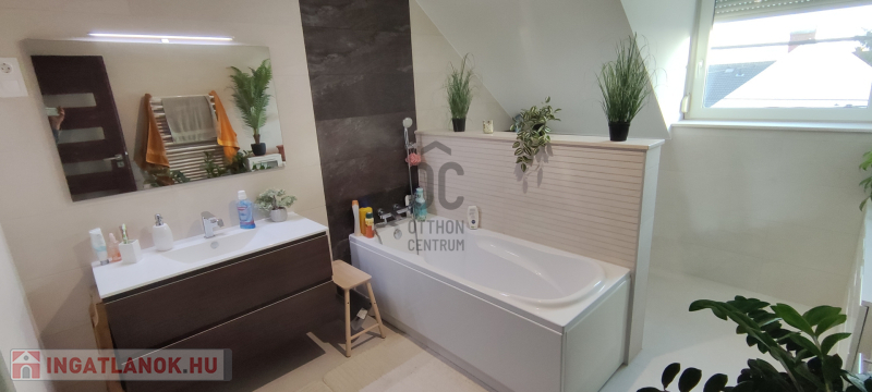 Eladó Debrecen egyik legfelkapottabb és legkellemesebb környékén, Csapókert szívében egy igazán különleges ingatlan, amely tökéletes választás lehet családok számára, vagy akár befektetési céllal is. Ez a családi ház 210 négyzetméteres alapterülettel rendelkezik, beton alapra 40 cm-es téglából épült. A ház egy 346 négyzetméteres telken helyezkedik el, amely lehetőséget ad a szabadidő kellemes eltöltésére, valamint a kertészkedés örömeire is. Az ingatlan belső elrendezése rendkívül praktikus és tágas, hiszen a négy hálószobája és két fürdőszobája révén ideális választás lehet nagyobb családok számára is. A világos nappali, amely a ház központi helyén található, tökéletes teret biztosít a közös családi programokhoz, míg a kandalló kellemes hangulatot teremt a hűvösebb estéken. A motoros redőnyök pedig nemcsak a biztonságot, hanem a kényelmet is szolgálják, hiszen könnyedén szabályozhatja a beáramló fényt. A házba kiváló minőségű, gépesített tölgyfa konyhabútor került beépítésre.