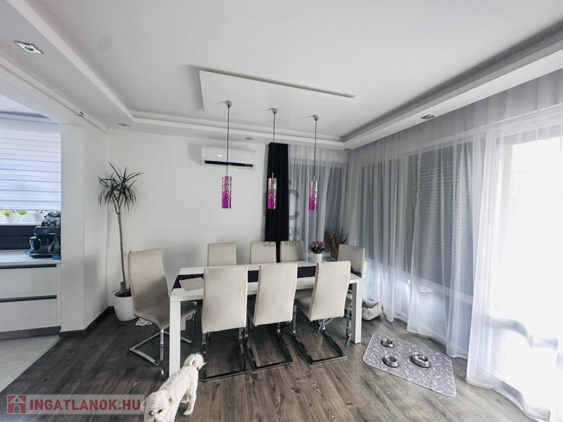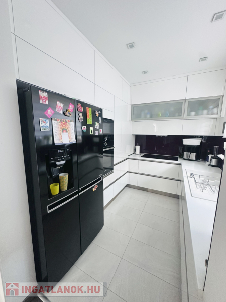 A 2018-ban épült, háromszintes, nappali + 5 szobás sorházi ingatlan közel 300 m² saját kerttel rendelkezik, amely a nappaliból és az utcáról is könnyedén megközelíthető.