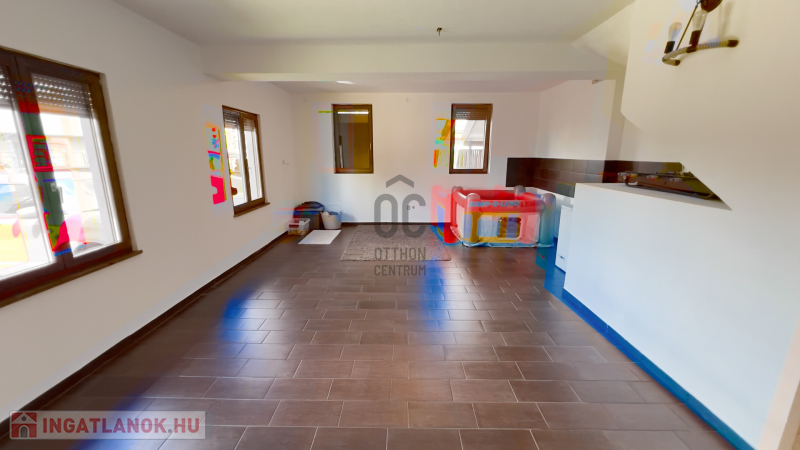 A beépített garázsból kialakított 37 m²-es szoba ideális helyszíne lehet családi eseményeknek, vendégfogadásnak vagy akár külön lakrésznek is vagy vissza is lehet állítani az eredeti állapotot.
