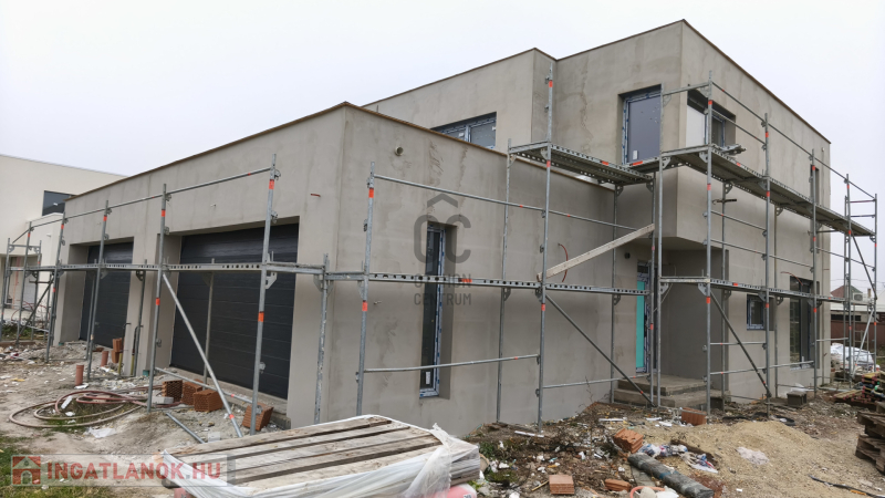 Debrecen Epreskert városrészben , új, modern ingatlanok társaságában, csendes, térkővel kirakott utcában eladó, egy mai modern technológiával épülő ikerház.