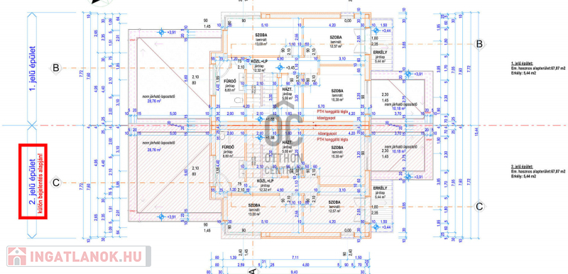 A lakóingatlanhoz tartozik még : 17,1 m2 - es terasz + 5,44 m2 - es erkély.