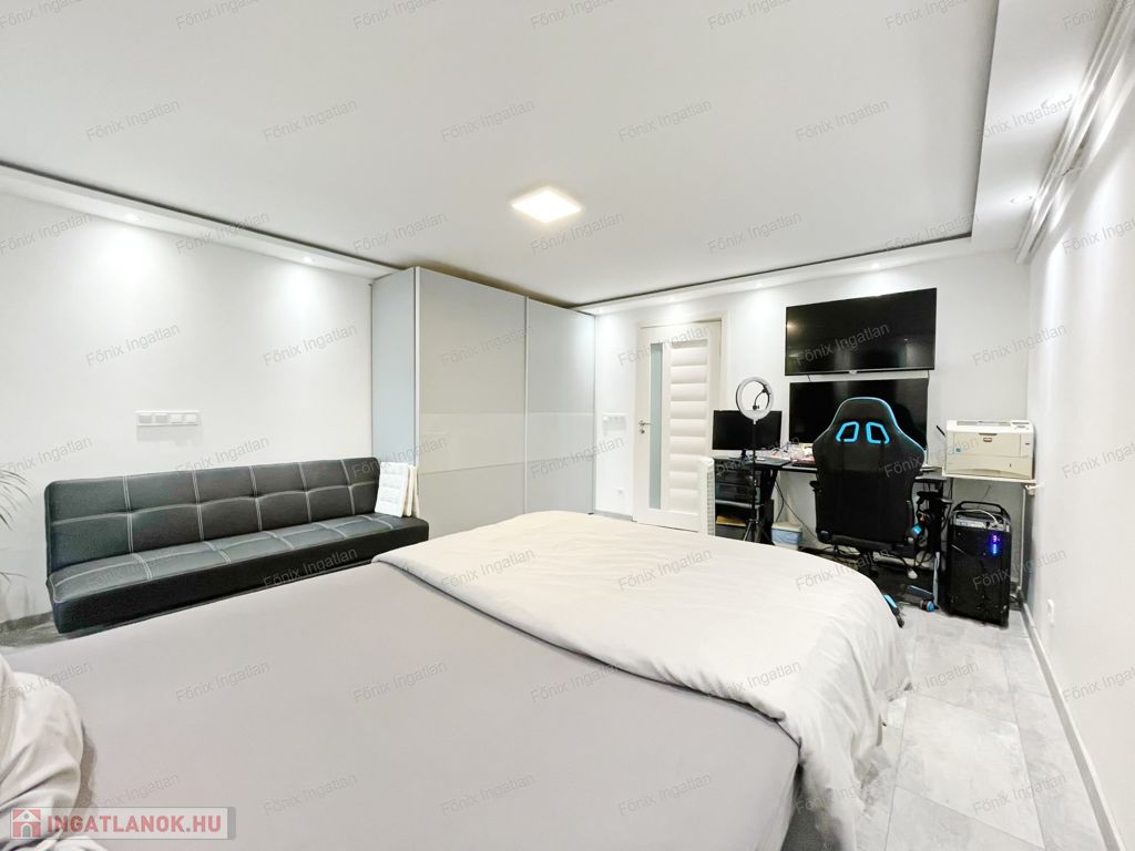 -garázs: 43 m2, elektromos garázskapu, ablaka van, vízvételi lehetőség, fűtés kialakítva,
