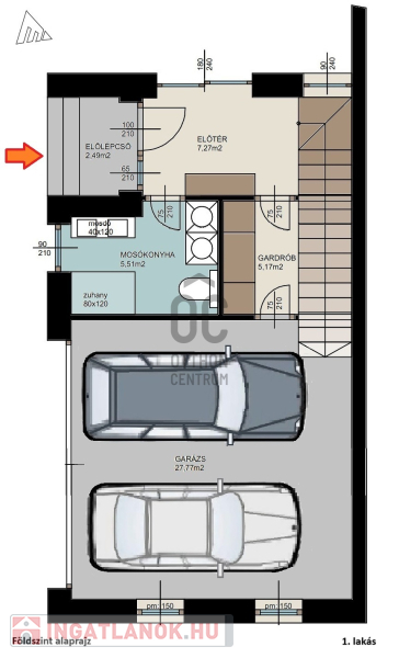 1. lakás Br. 170 nm, 100 nm kertkapcsolattal: