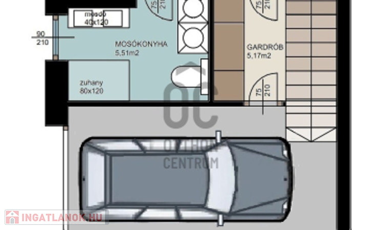 földszinten: duplagarázs, mosókonyha zuhanyzóval, gardróbbal/tárolóval