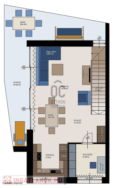 I. emeleten: nappali, étkező - konyha, erkély vagy teraszkapcsolattal