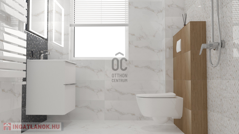 - Fürdőszoba felszereltség: Hansgrohe csaptelepek, Wellis szaniterek, Macryl Eco kád, Ravak zuhanyfal